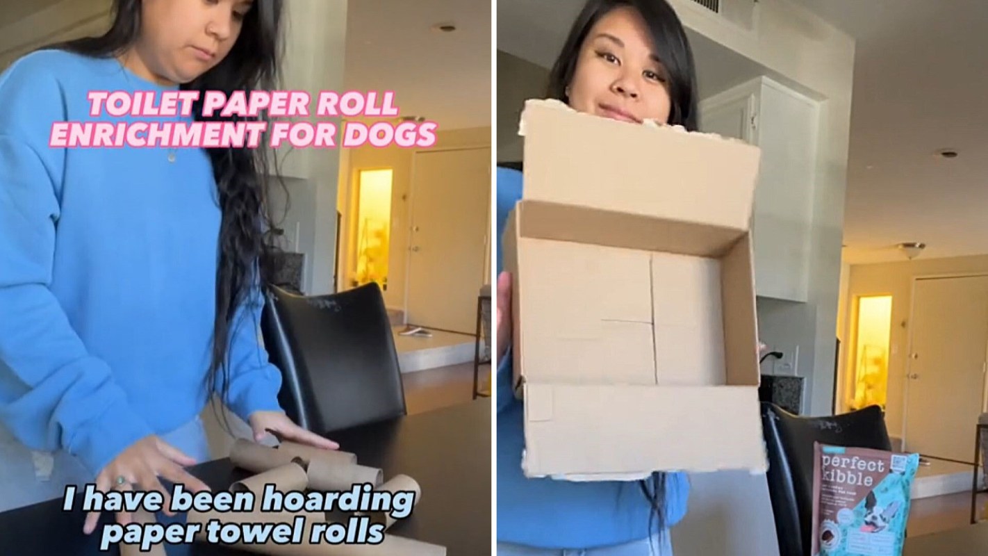 Does your dog need a little extra workout today? This TikToker has a great tip for reusing paper towels and toilet paper rolls to add some enrichment to their dog's dinner time.