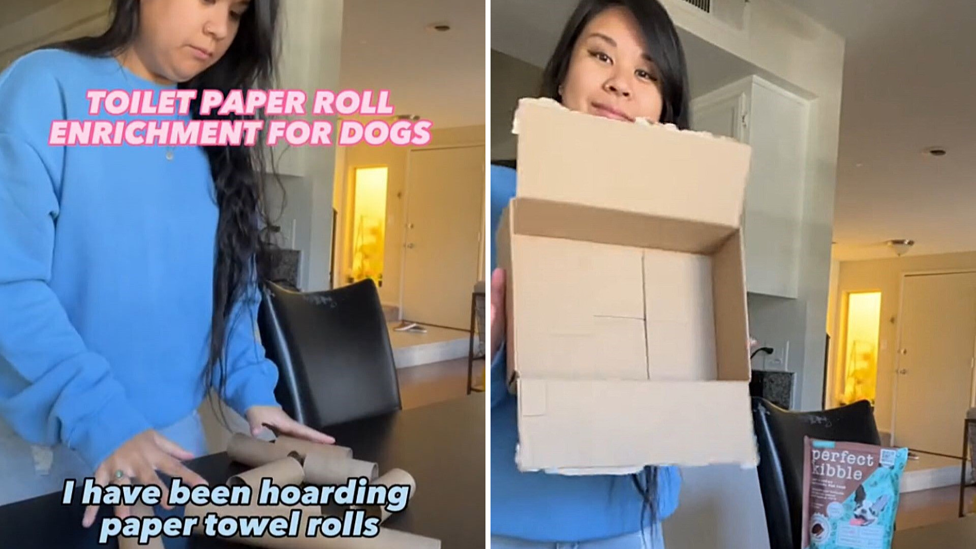 Does your dog need a little extra workout today? This TikToker has a great tip for reusing paper towels and toilet paper rolls to add some enrichment to their dog's dinner time.