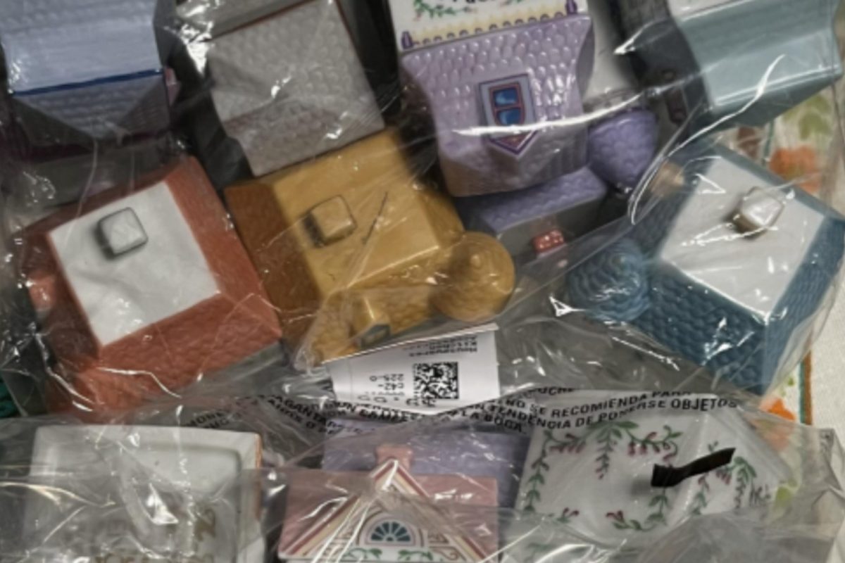 The photo showed a clear bag stuffed with charming ceramic houses with different spice names on them.