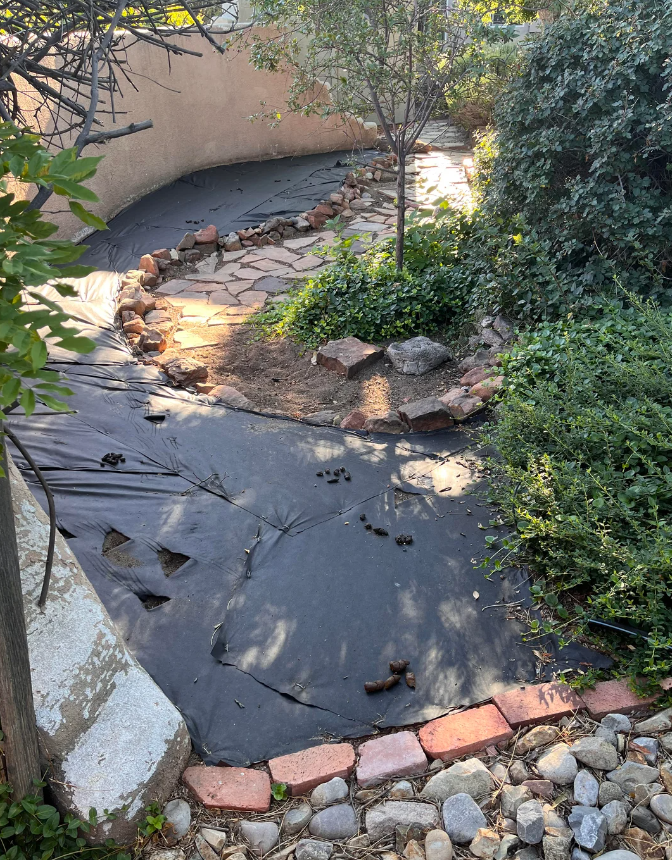 "Landscape fabric turns into a mess of plastic after a few years and leaches microplastics throughout the soil," one user said. "Mulch will be fine without the fabric. Rocks are also fine."