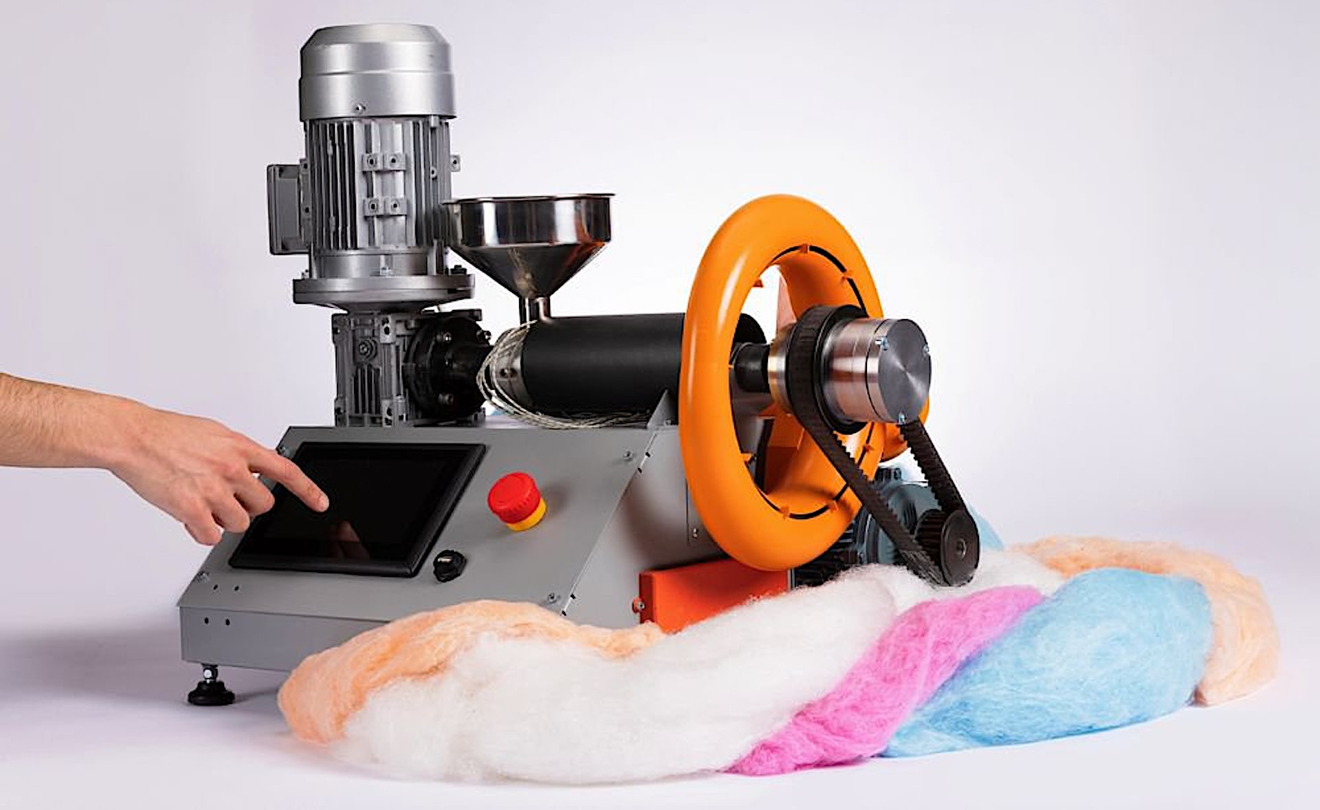 According to The Polyfloss Factory website, these fibers can be used in various applications, including textiles, packaging, insulation, and even construction. Once produced, the fibers are able to be "threaded, woven, knitted, or even felted with felting needles techniques."