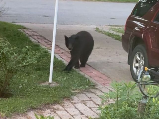 According to KCTV 5, a local resident, Mr. Pearson, spotted a black bear outside his property when he tried to take his dogs for an early morning stroll.